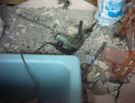 和式便器から洋式便器へ赤い丸の所から雨水が浸入